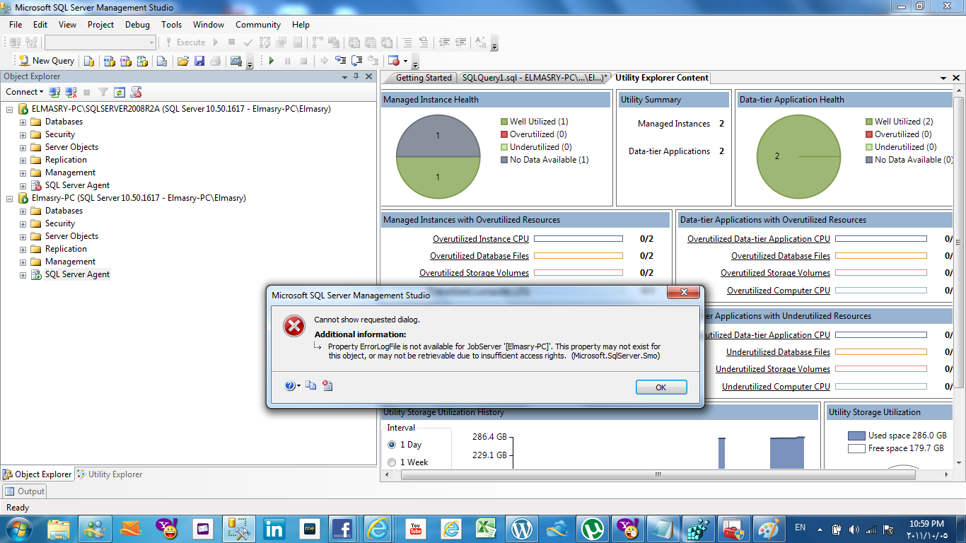 This Error Show to me when i want to see the Properties of SQL Server Agent to my instance