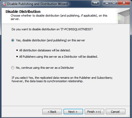 2- Disable this Distribution and Publishing in this Server or Disable the Publishing and let the Distribution
