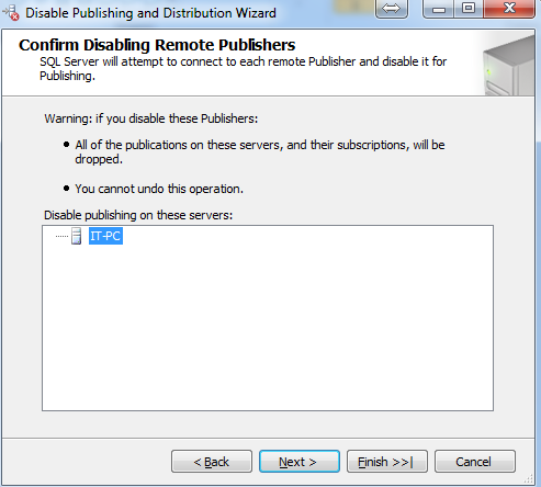 3- Confirm Disabling Remote publisher this step if you add Remote Publisher