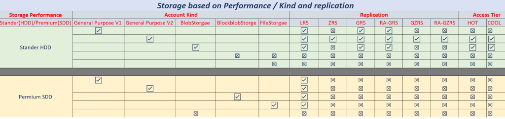 Microsoft provide 6 types of replications depended on the locations and the storage account kind