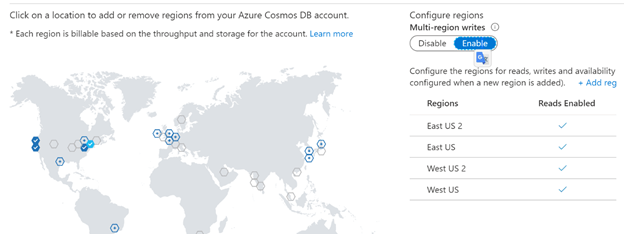 - Multi-region Write: Enable the write option on the Regions you selected it on the geo-redundancy this means If you need to enable the Multi Regions Write option you Should Enable the Geo-Redundancy option with it this option you can enable it after the installation from Replicate Data Globally option If you need to learn more about this option check this Link
