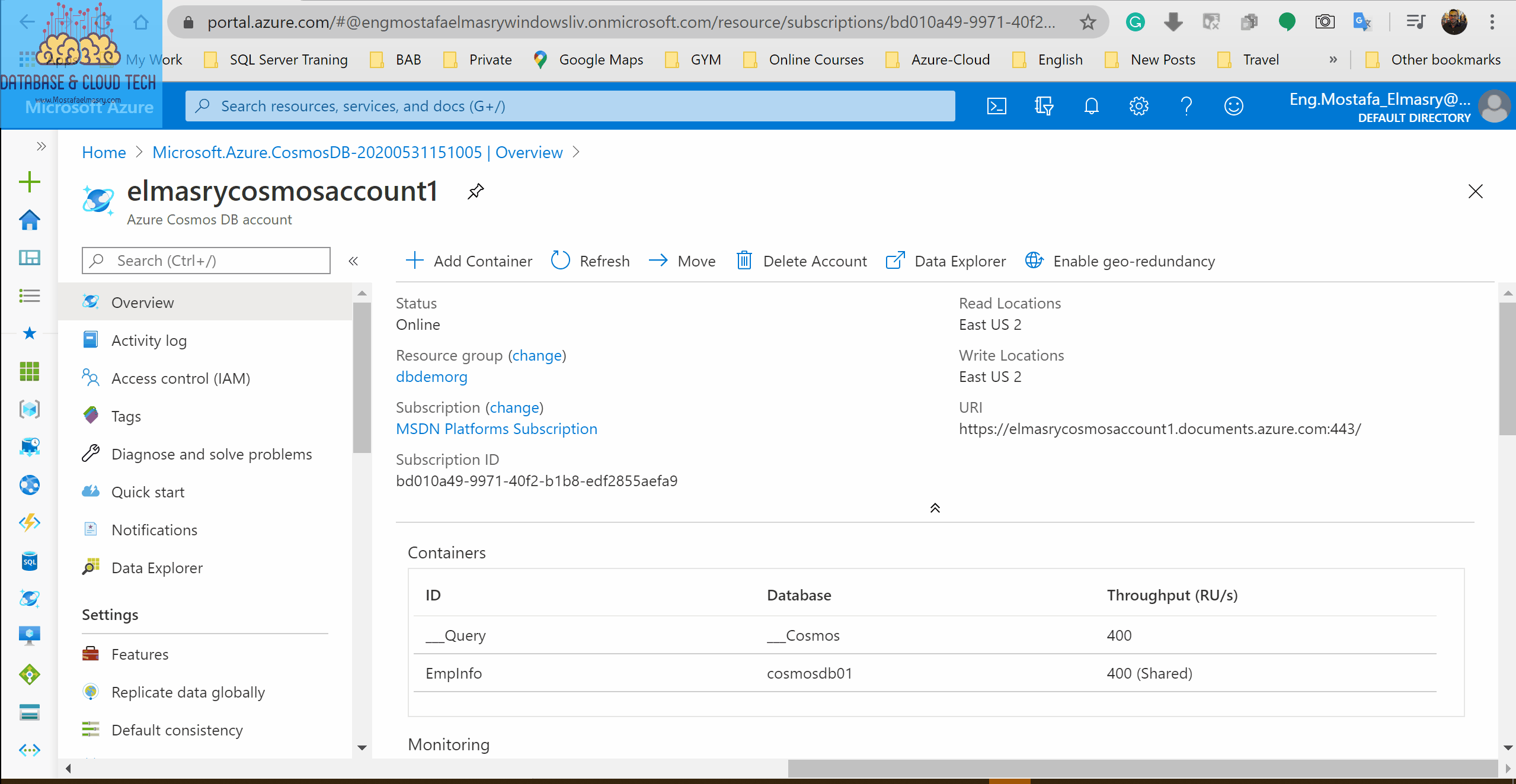 Azure Cosmos Database Resources