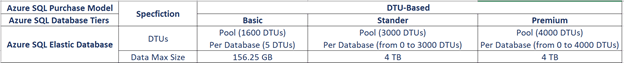 - DTU-Based Purchase Model: Supported 3 level of Database Tiers (Basic, Stander, Premium)