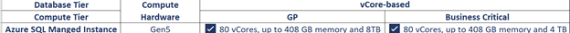 - Maximum Database Can be hosted in this tier is 4 TB with maximum 80 Cores when using Gen5 Compute hardware